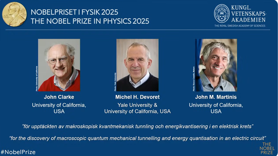 北京时间10月7日,瑞典皇家科学院宣布股票配资门户,2025年诺贝尔物理学奖授予科学家约翰·克拉克(John Clarke)、米歇尔·H·德沃雷特(Michel H. Devoret)和约翰·M·马丁尼斯(John M. Martinis),以表彰他们“在电路中发现宏观量子力学隧穿和能量量子化”方面的杰出贡献。